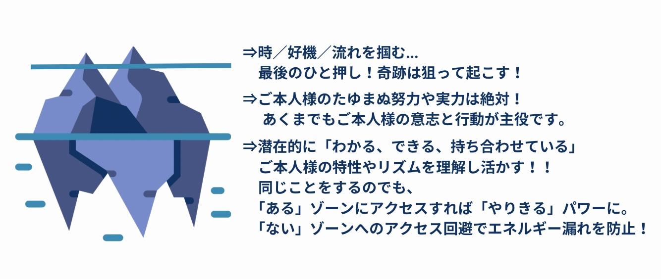 「信じきる力」を強化し、プレッシャーを力に変えるマインドセットを構築。潜在的に「ある」ゾーンへのアクセスすることで「わかる、納得する、やれる」へ。